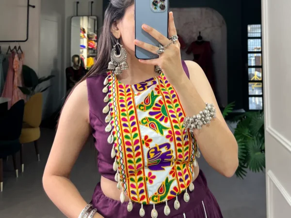 Wine-Rayon-Lehenga-And-Gamthi-Work-Blouse-For-Women | Lehenga and choli