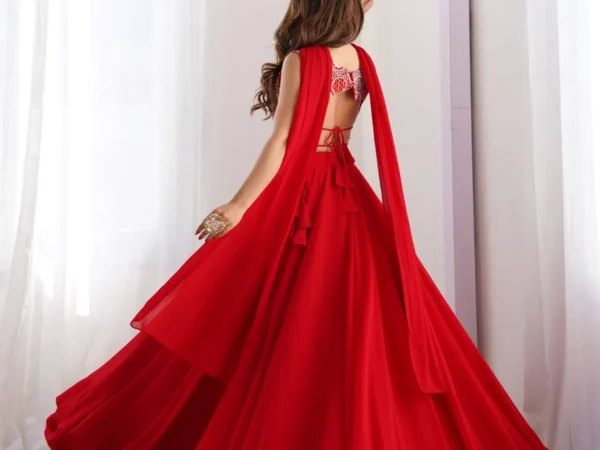 Red-Pure-Soft-Fox-Georgette-Most-Trendy-Padding-Fabric-Fully-for-women | Lehenga and choli