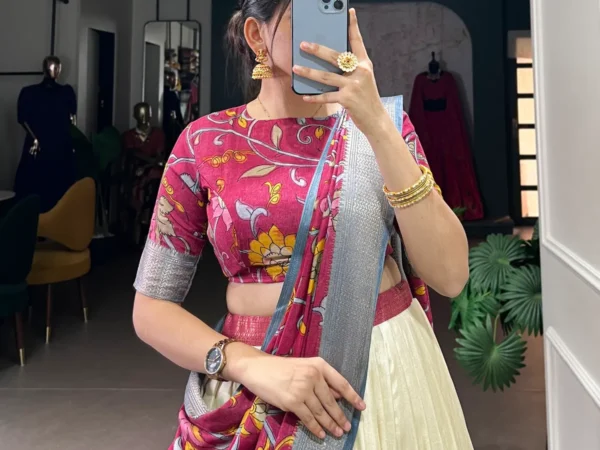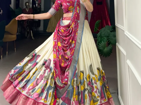 White-Color-Dola-Silk-Designer-Kalamkari-Print-Lehenga-Choli-For-women | Lehenga and choli