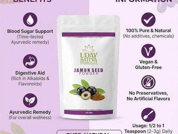 Jamun Seed Powder, 100% Pure Natural Java Plum, Blood Sugar Support, Ayurvedic Remedy, 100g | Uday sattva