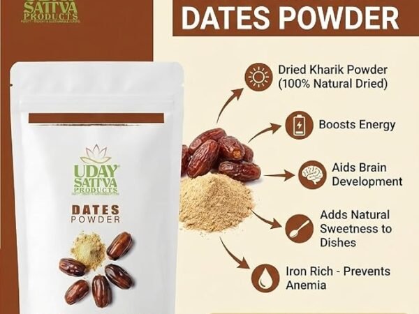 Dates Powder, 100% Natural Dried Khajur Powder, Vegan & Gluten-Free, Natural Sweetener, 100g | Uday sattva