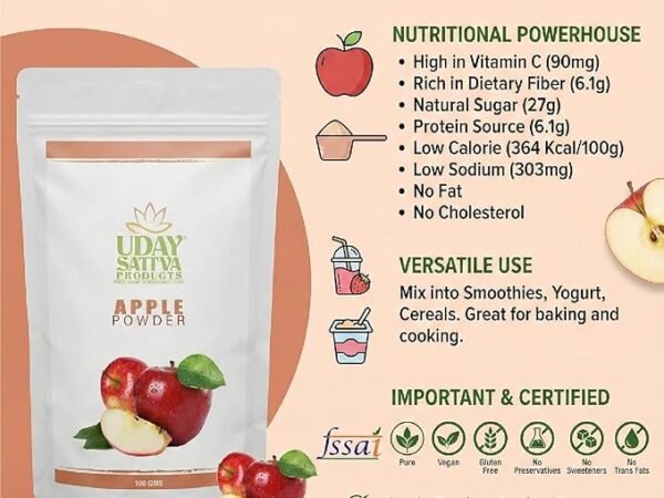Apple Powder, Natural Fruit Powder, High Vitamin C, Rich Dietary Fiber, 100g | Uday sattva