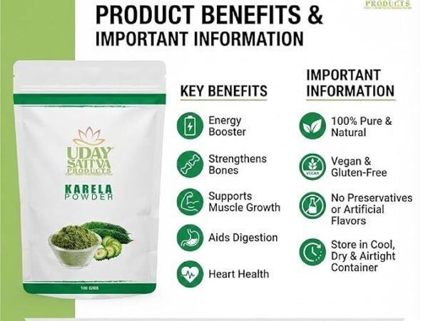 Natural Karela Powder (100g) – 100% Pure Bitter Gourd – Energy Booster & Heart Health Support – Vegan, Gluten-Free, No Preservatives | Uday sattva