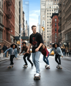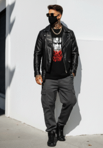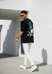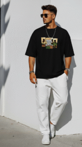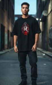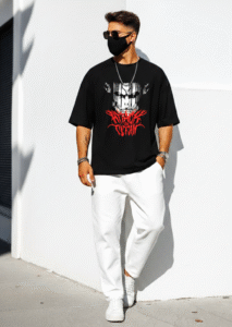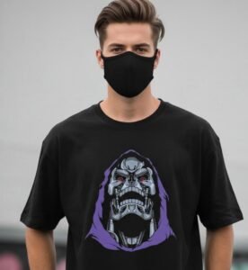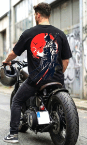 WÖLFIN Men’s Black Graphic T-Shirt – Flame Skull Ghost Rider Style Print | Premium Cotton Casual Tee