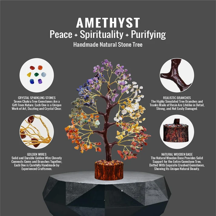Bring harmony, positivity, and beauty into your home with this handcrafted Glow-in-the-Dark 7 Chakra Crystal Tree. Designed to radiate calming energy day and night, it’s a perfect blend of spiritual décor and elegant artistry.
