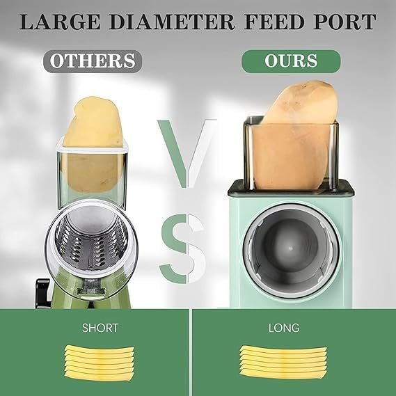 - Bigger Rotary Outlet – Smooth, fast output of evenly cut vegetables.