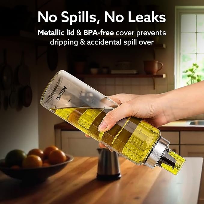 AGARO Elite Borosilicate Glass Oil Dispenser With Capacity Markings, Pack of 2, 500 Ml each, Metallic Lid, Oil Bottle Jar, Transparent | ASJAR