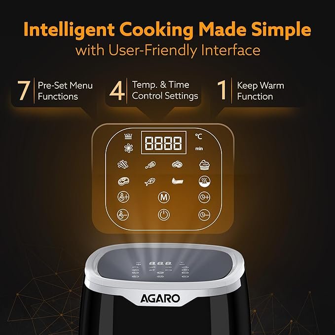 Be the first to review “AGARO Galaxy Digital Air Fryer For Home, 4.5L, Electric Air Fryer, Convection Oven, 1400W, 7 Preset Programs & Reheat, 360 Degrees Air Circulation, Digital Touch Display, Bake, Roast, Toast, Black | AGARO” Cancel reply