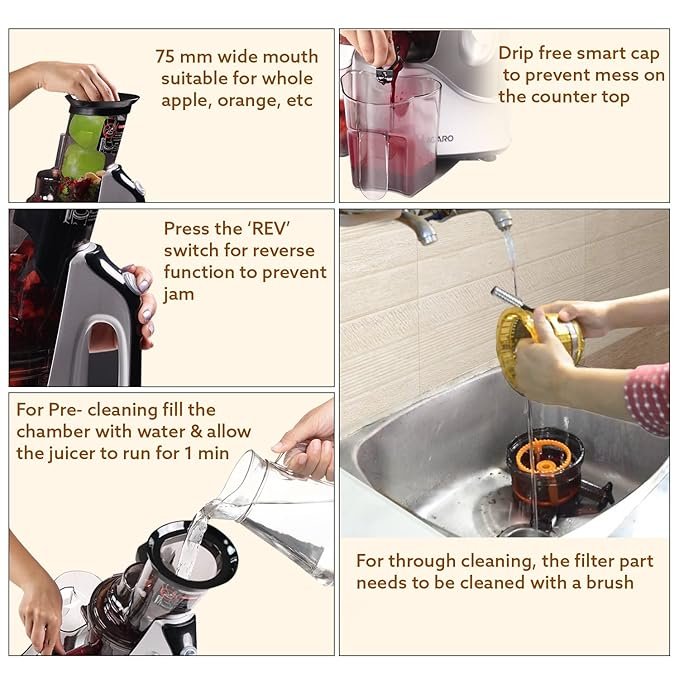 - Can be used to extract juices, prepare smoothies and sorbet.
