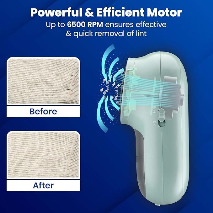 - 5W motor with 6500 RPM ensures quick and smooth removal of lints.
