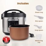 • 5 L 2mm thick Inner Bowl, Cooks up to 5-6 cups of Raw Rice or 800 gms of raw rice
