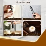 • The milk frother contains two attachments, a double-layered milk frother & egg whisk. They can be used to stir drinks such as lattes and cappuccinos as well whisk egg liquid