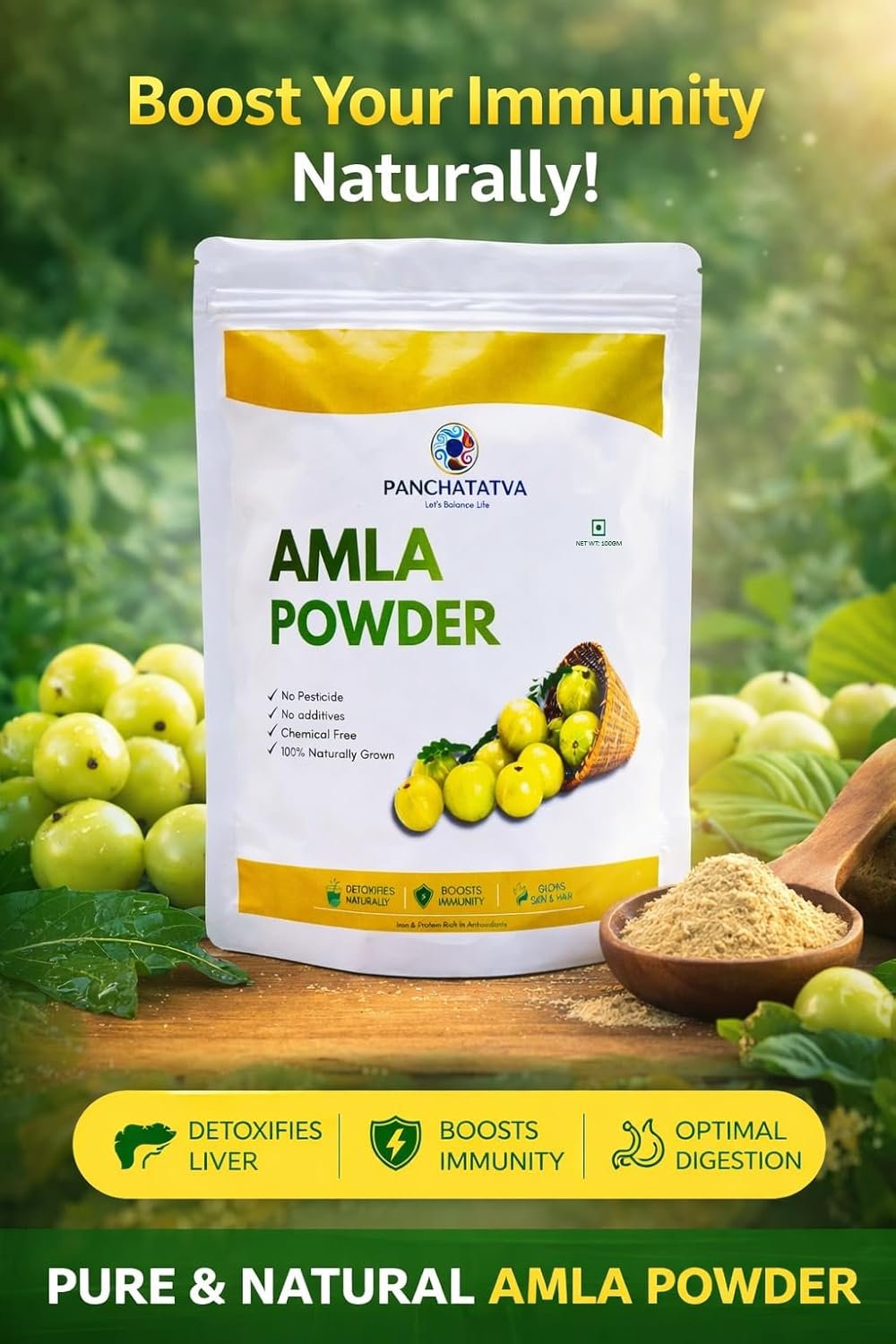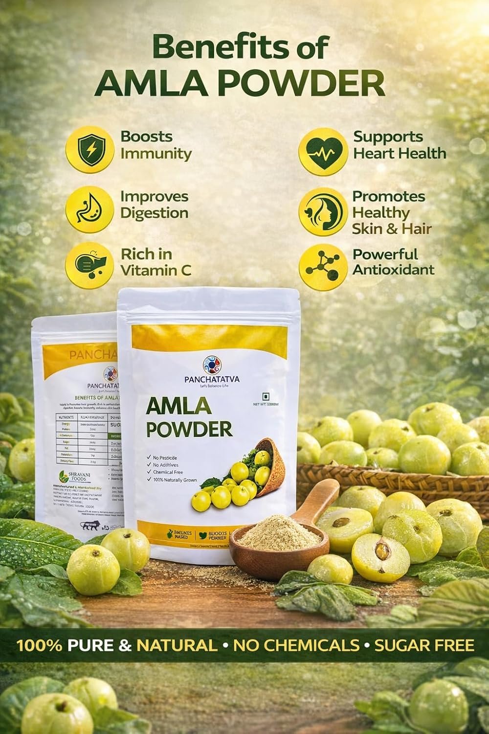 - Immunity Support – Panchatatva Amla Powder is rich in natural Vitamin C and antioxidants that help strengthen the body’s immune system