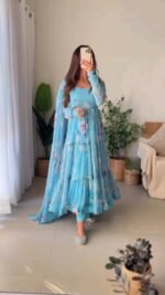 Be the first to review “Aqua Blue Color Printed Anarkali Kurta Set” Cancel reply