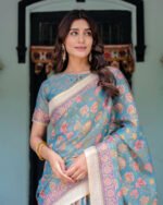 - Elevate your ethnic collection with this pure cotton linen saree, a seamless fusion of traditional elegance and modern comfort.