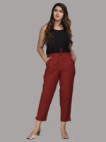 Be the first to review “Women Regular Fit Maroon Viscose Rayon Trousers | TA TECHNOLOGIE | AREEBA FASHION”