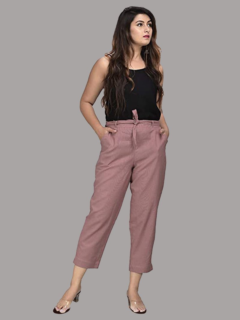AREEBA FASHION Women Regular Fit Pink Viscose Rayon Trousers | TA TECHNOLOGIE