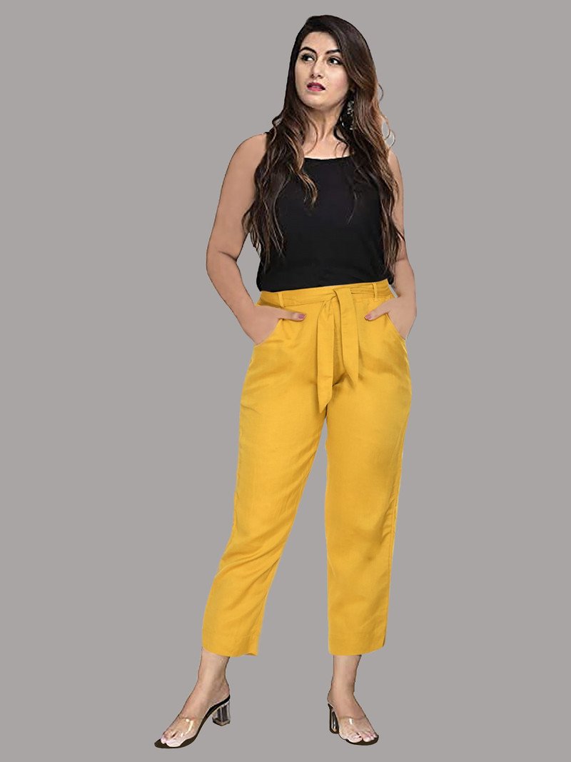 Women Regular Fit Yellow Viscose Rayon Trousers | TA TECHNOLOGIE |AREEBA FASHION