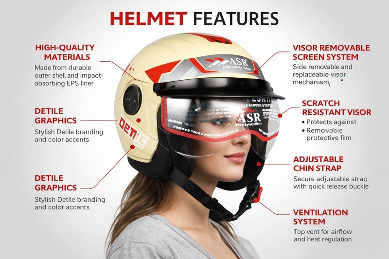 | Model Name | Open Face Helmet for Men and Women with Clear Visor |
