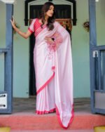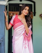 Be the first to review “Baby Pink Designer Saree with Mandala Pallu & Polka Dot Blouse | Satin Georgette | Handsfree Pallu Feature | Crown Fashion”