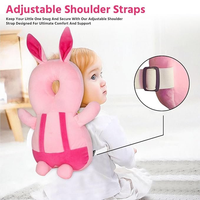 Baby Soft Toy Cartoon Animal Cushion Bag Soft Plush Toddler Backpack, Baby Safety Products for Baby Toddler Walker, Baby Back Protection for Crawling & Walking Design Rabbit (Pink) | Hug Puppy