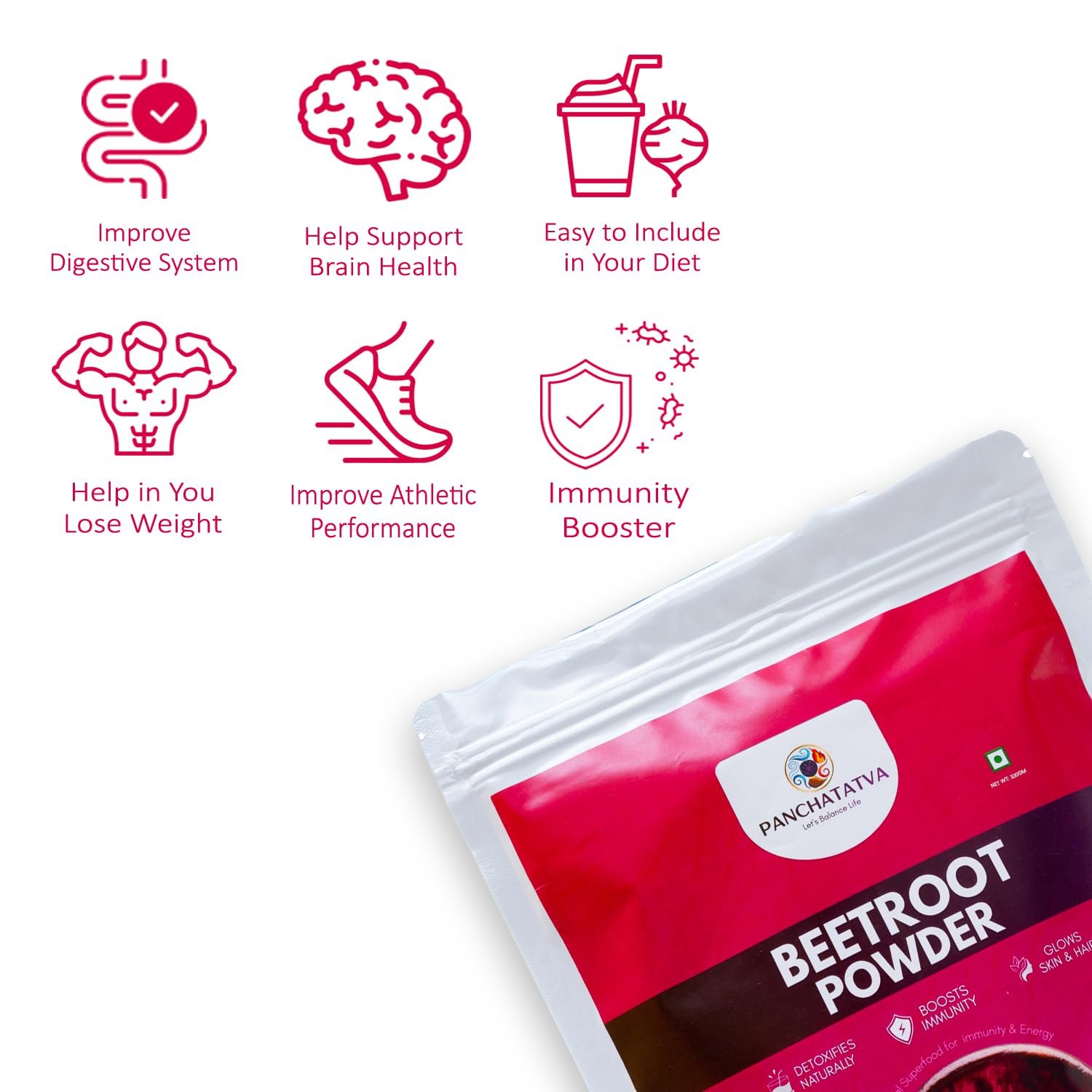 Beetroot Powder 100gm | Natural Support for Heart & Brain Function | Perfect for Beverages & Daily Nutrition | 100% Pure & Preservative-Free | for Men & Women | PANCHATATVA