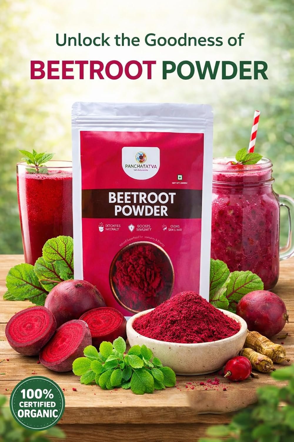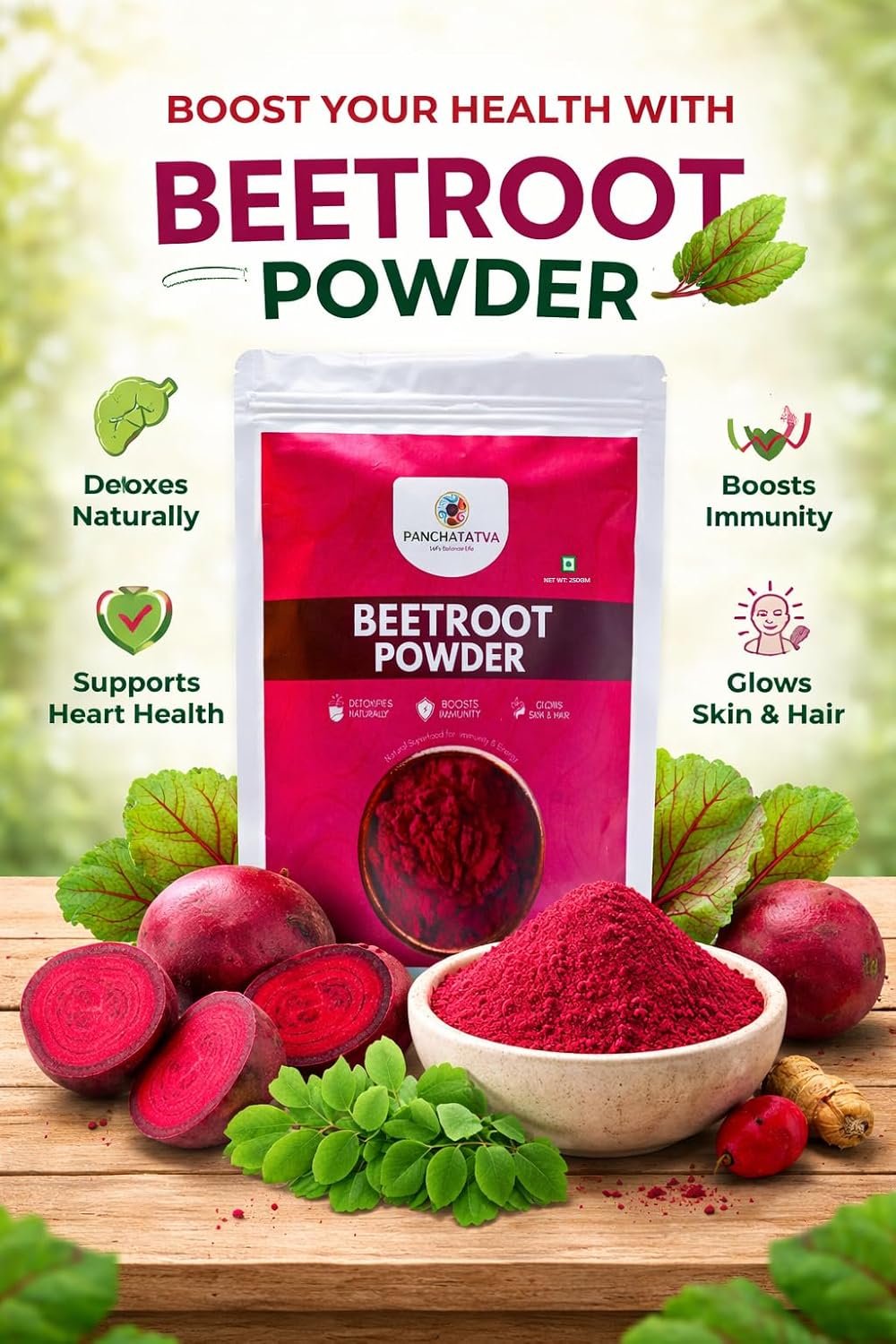 Beetroot Powder 250gm | Natural Support for Heart & Brain Function | Perfect for Beverages & Daily Nutrition | 100% Pure & Preservative-Free | for Men & Women | PANCHATATVA