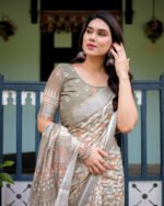 Design: The saree features a refined zari weave that adds a touch of subtle shimmer and sophistication.
