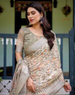 Be the first to review “Beige Pure Cotton Linen Saree with Geometric and Leaf Pattern, Blouse, and Tassels | Crown Fashion” Cancel reply
