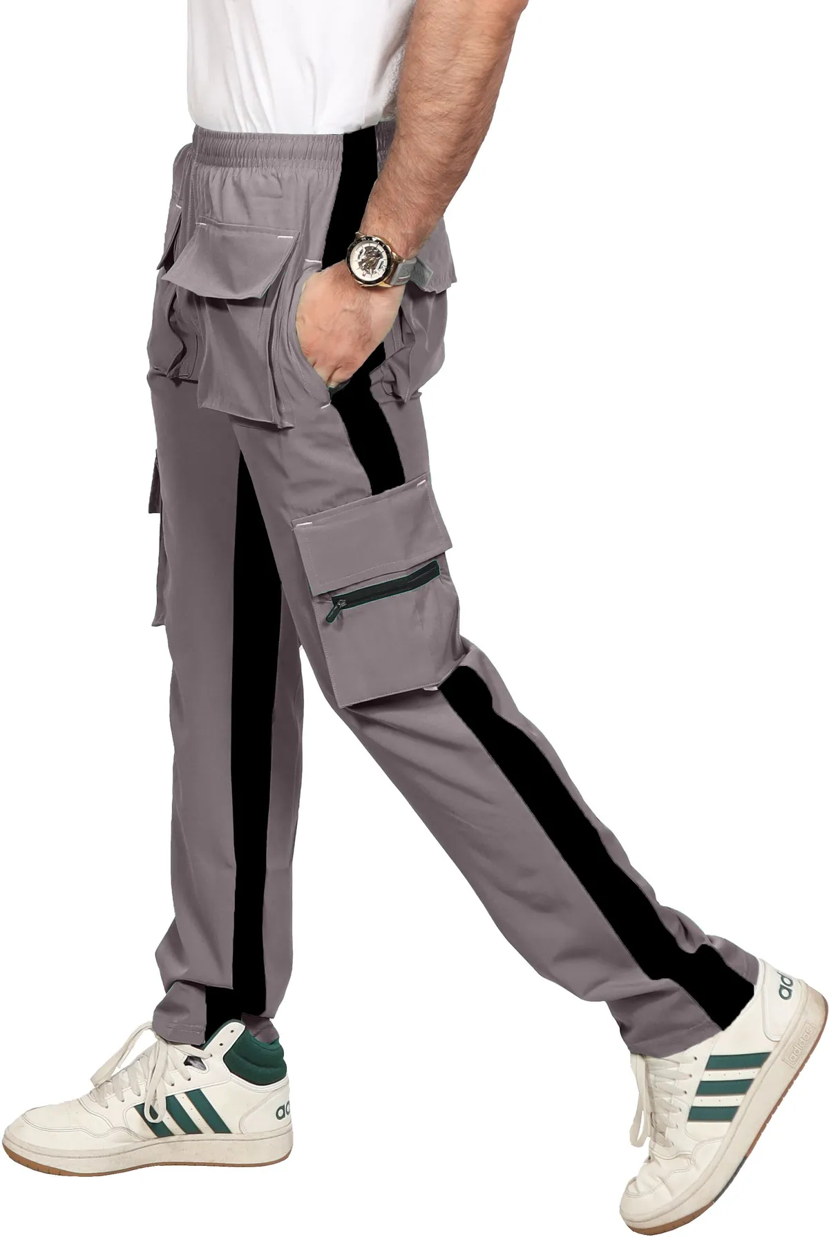 Grey Lycra Blend Polyester Elastic Self Design Track Pant For Men | Adaaistic
