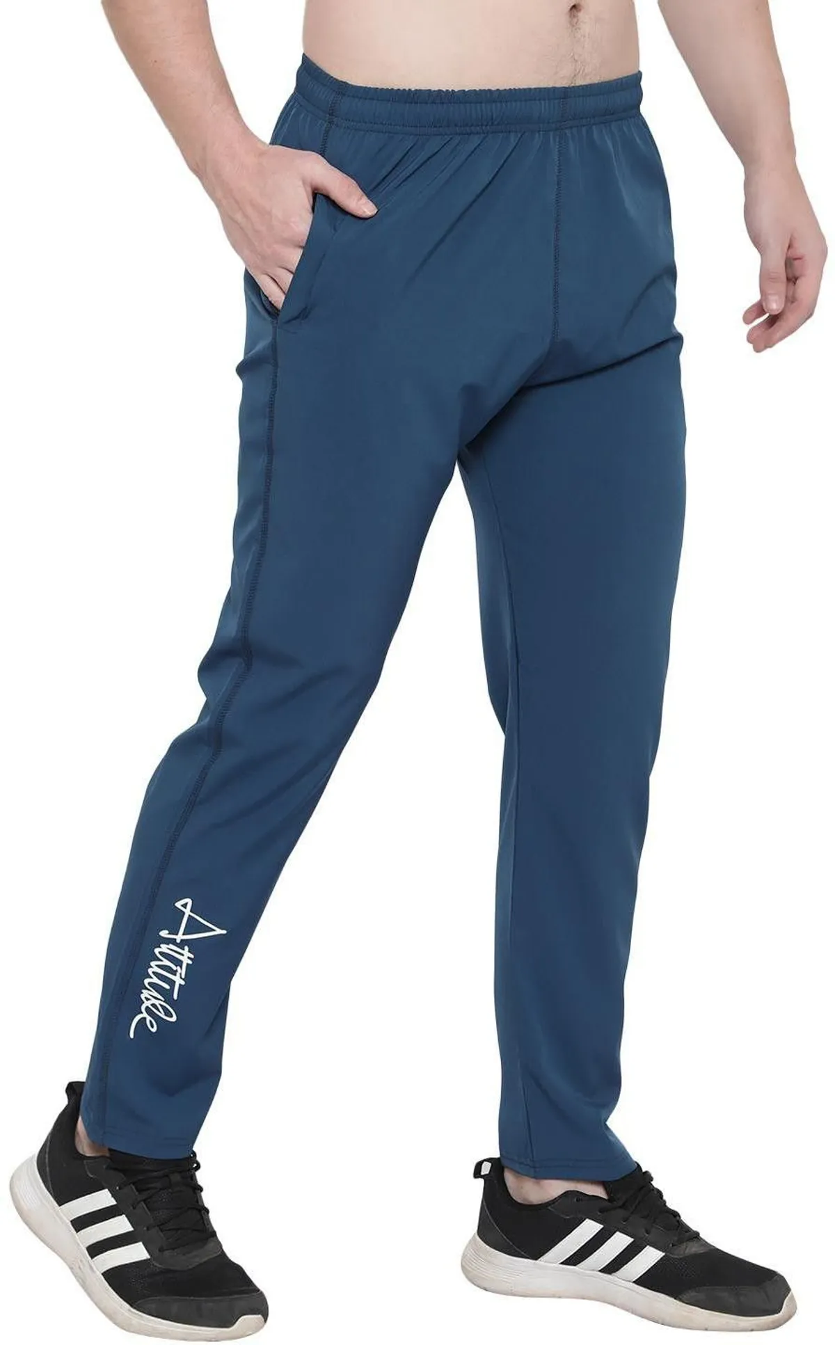 Blue Polyester Elastic Solid Track Pant For Men | ADAAISTIC