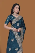 Be the first to review “BRAD LEEZO Embellished Assam Silk Chiffon Saree (Blue)” Cancel reply