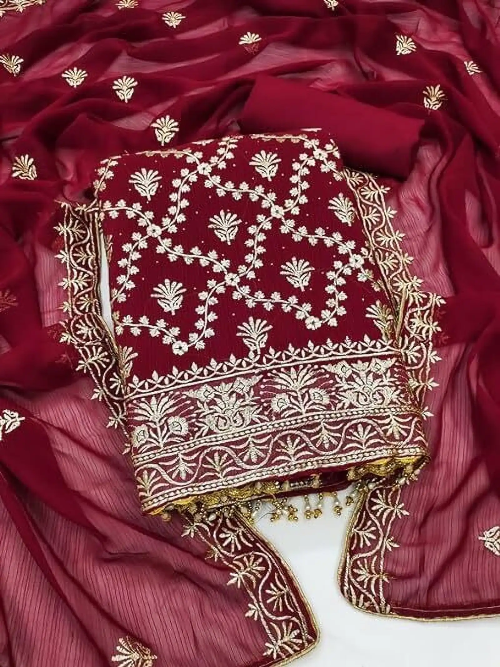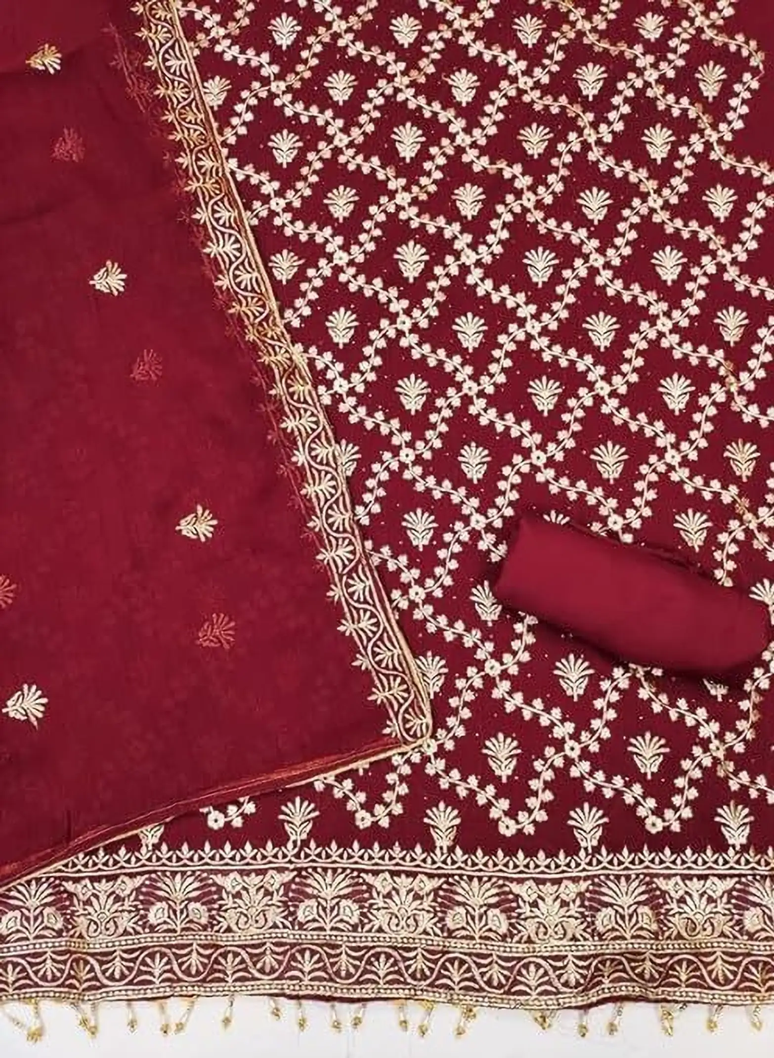 BRAD LEEZO Semi Stitched Georgette Salwar Suit Material Embroidered