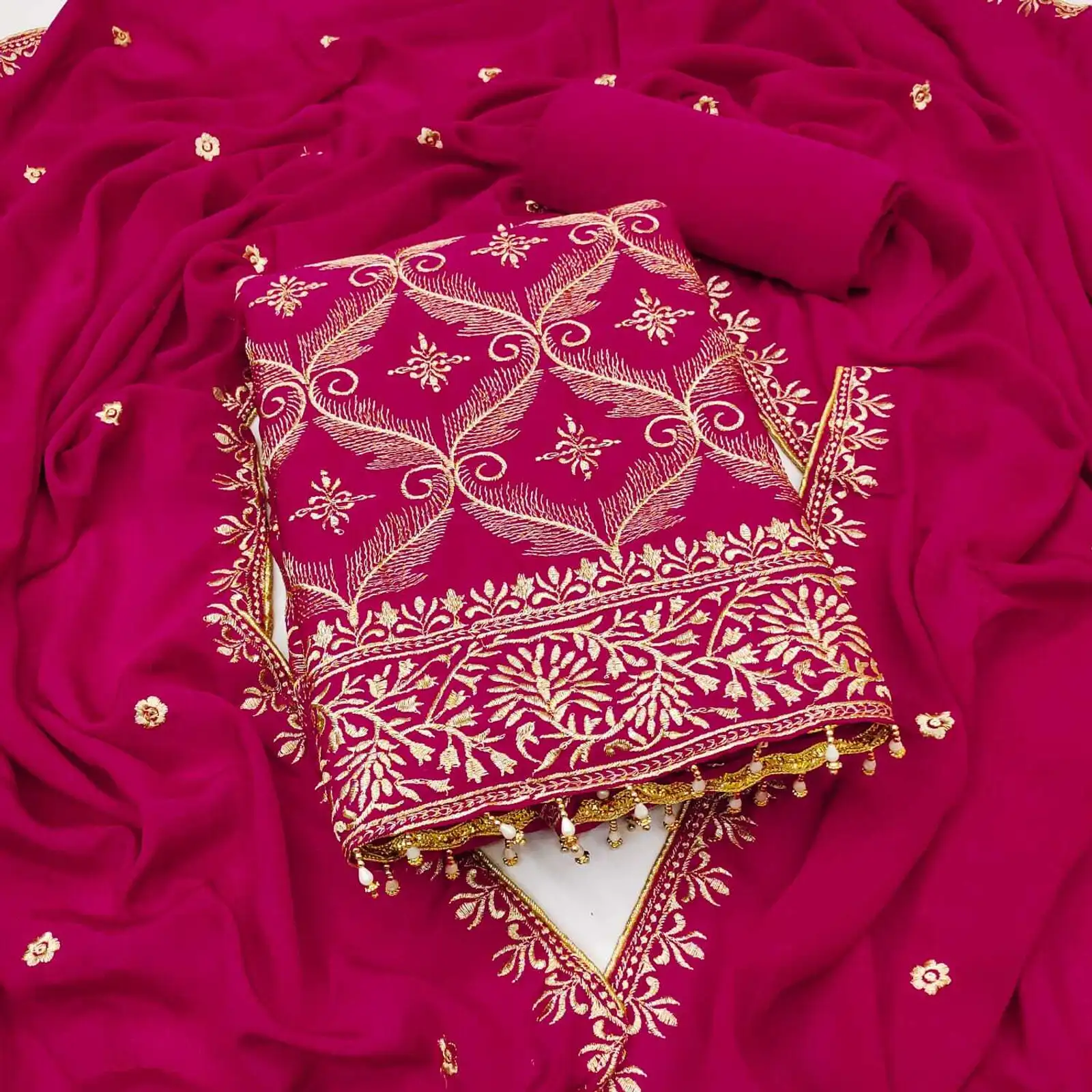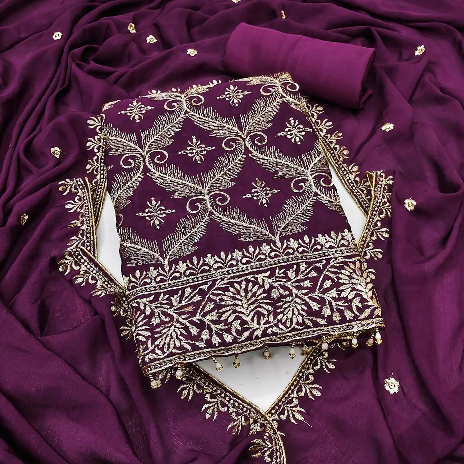 BRAD LEEZO Unstitched Chiffon Salwar Suit Material Embroidered