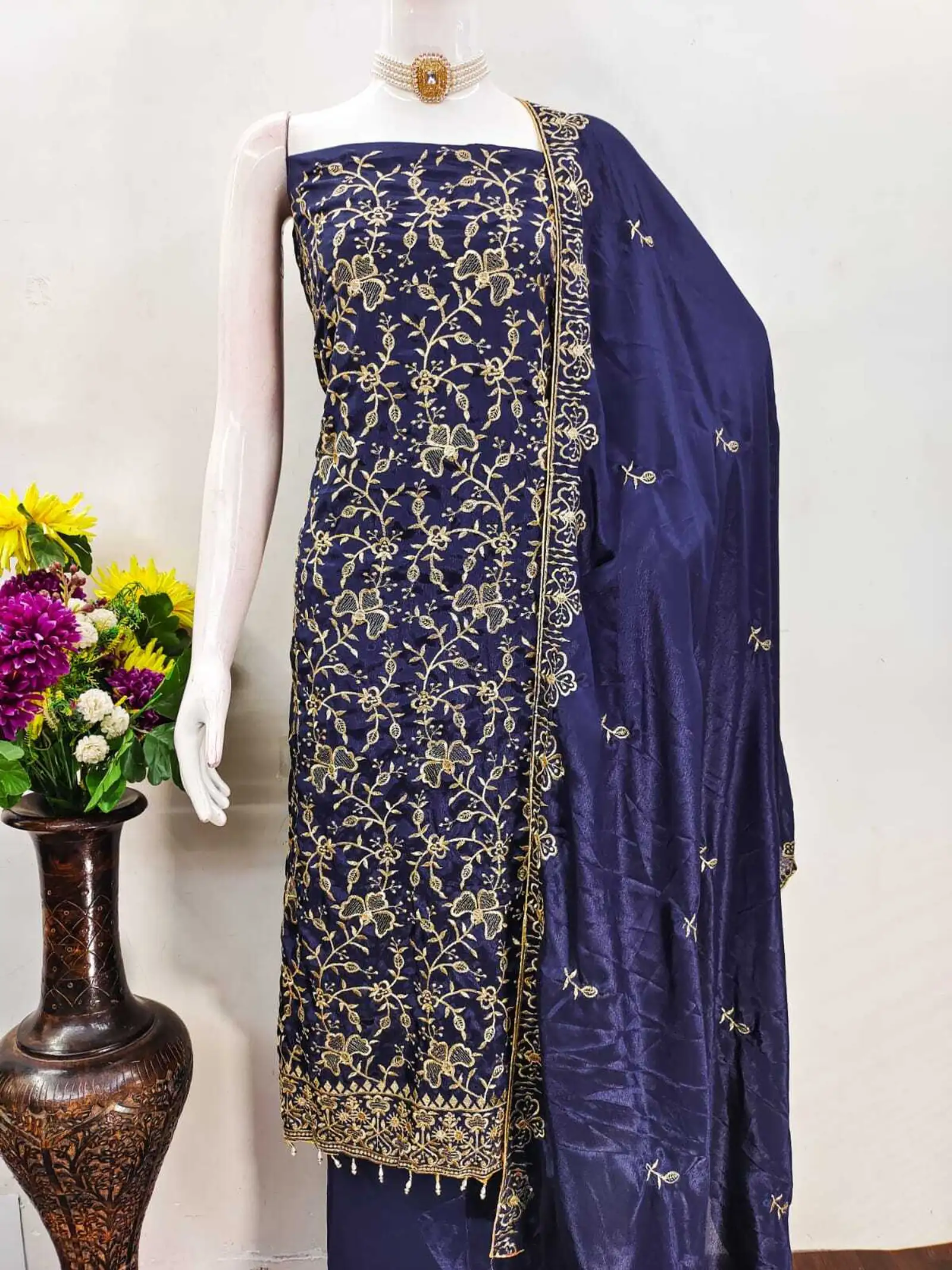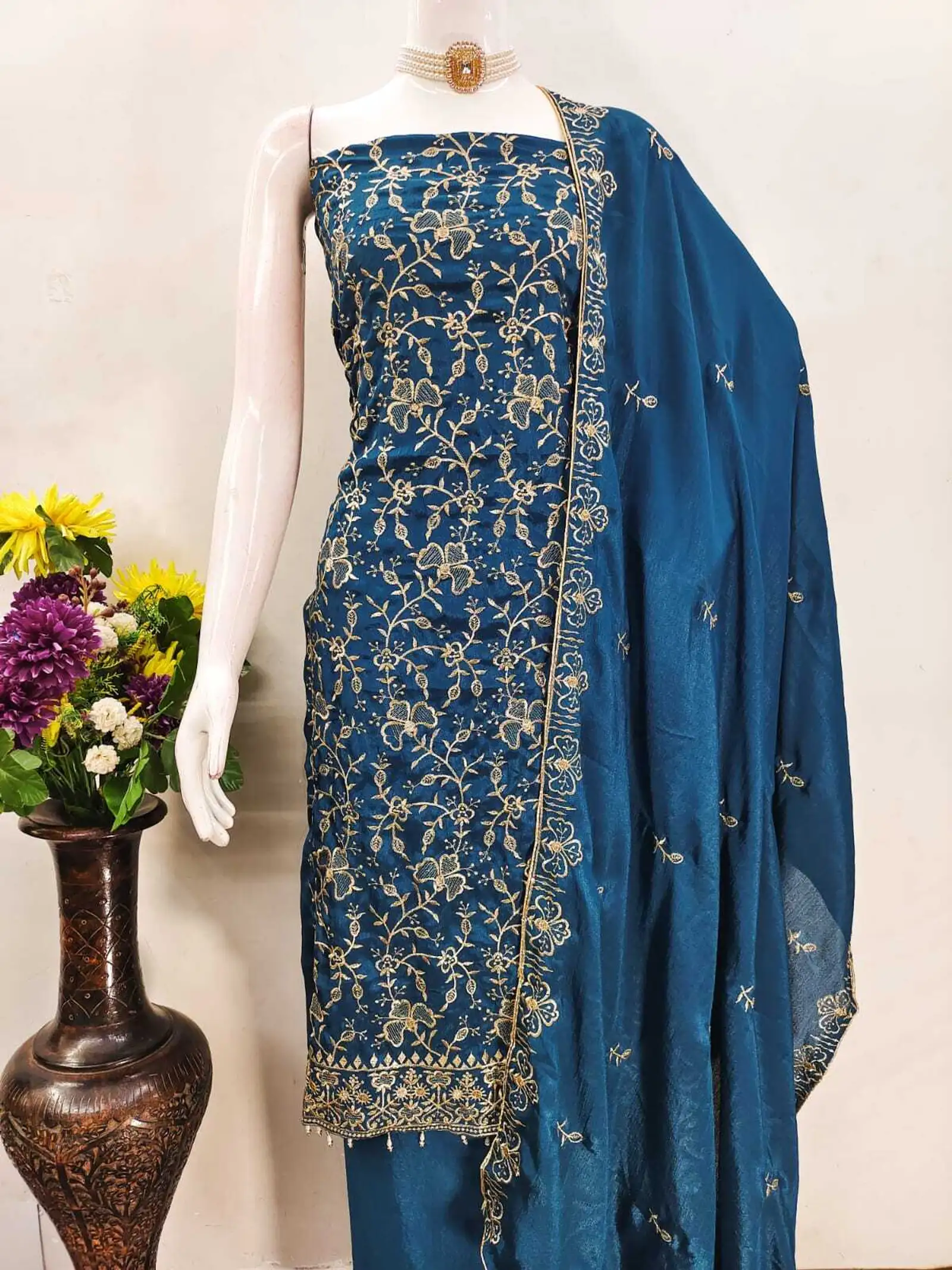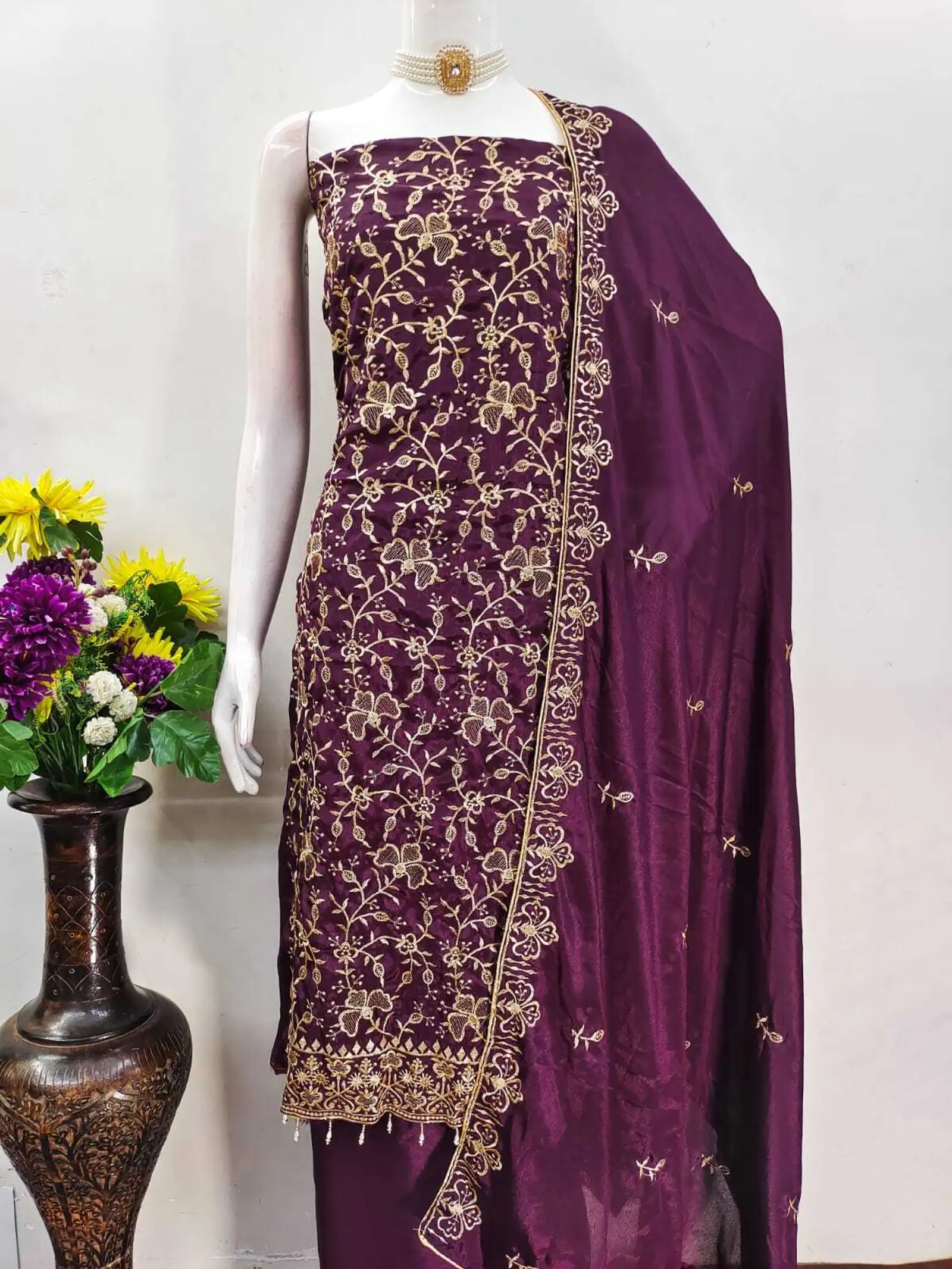 BRAD LEEZO Unstitched Chiffon Salwar Suit Material Embroidered