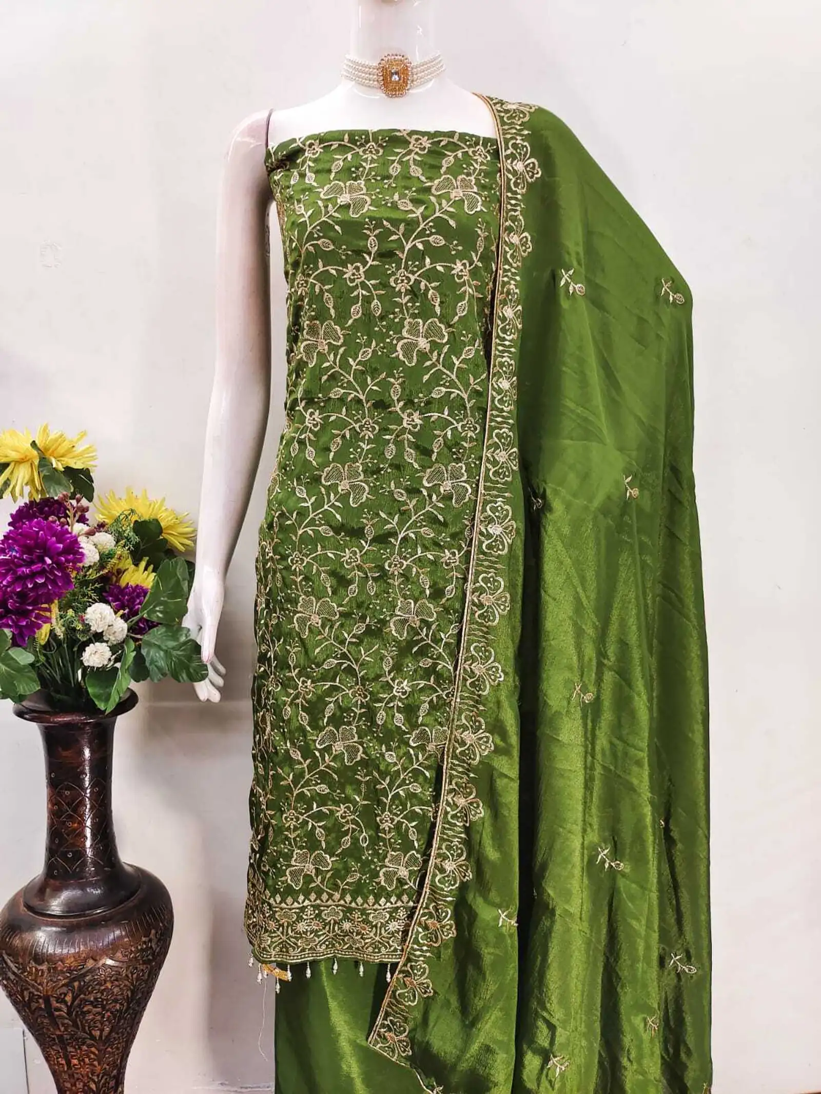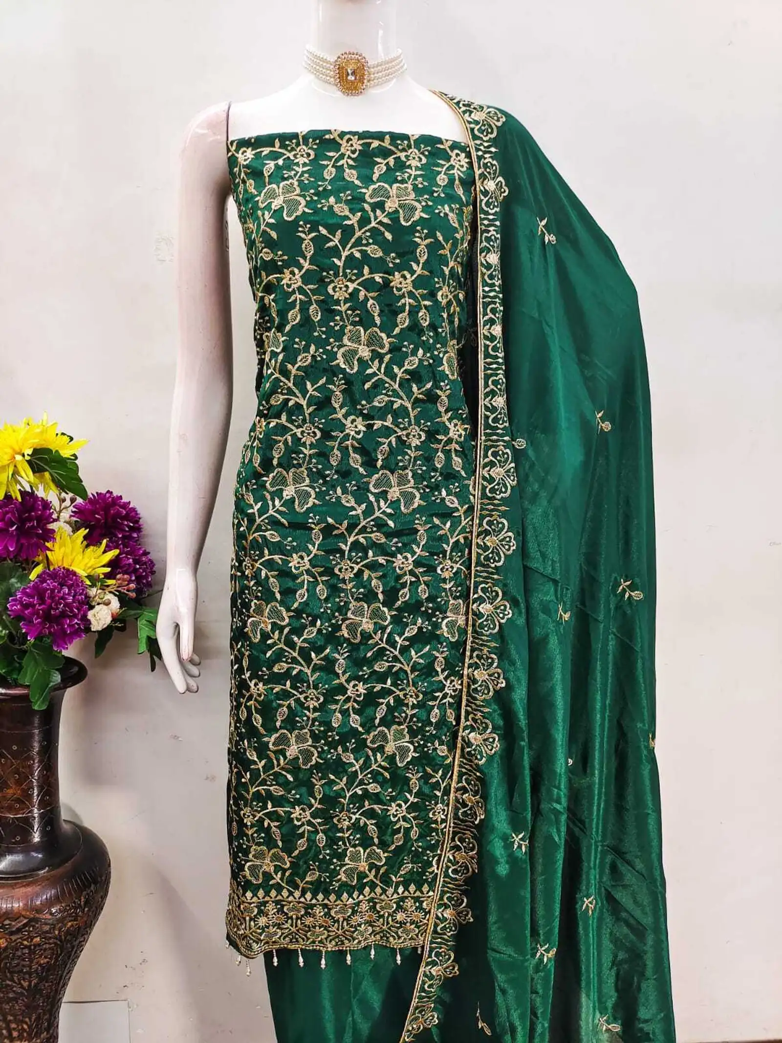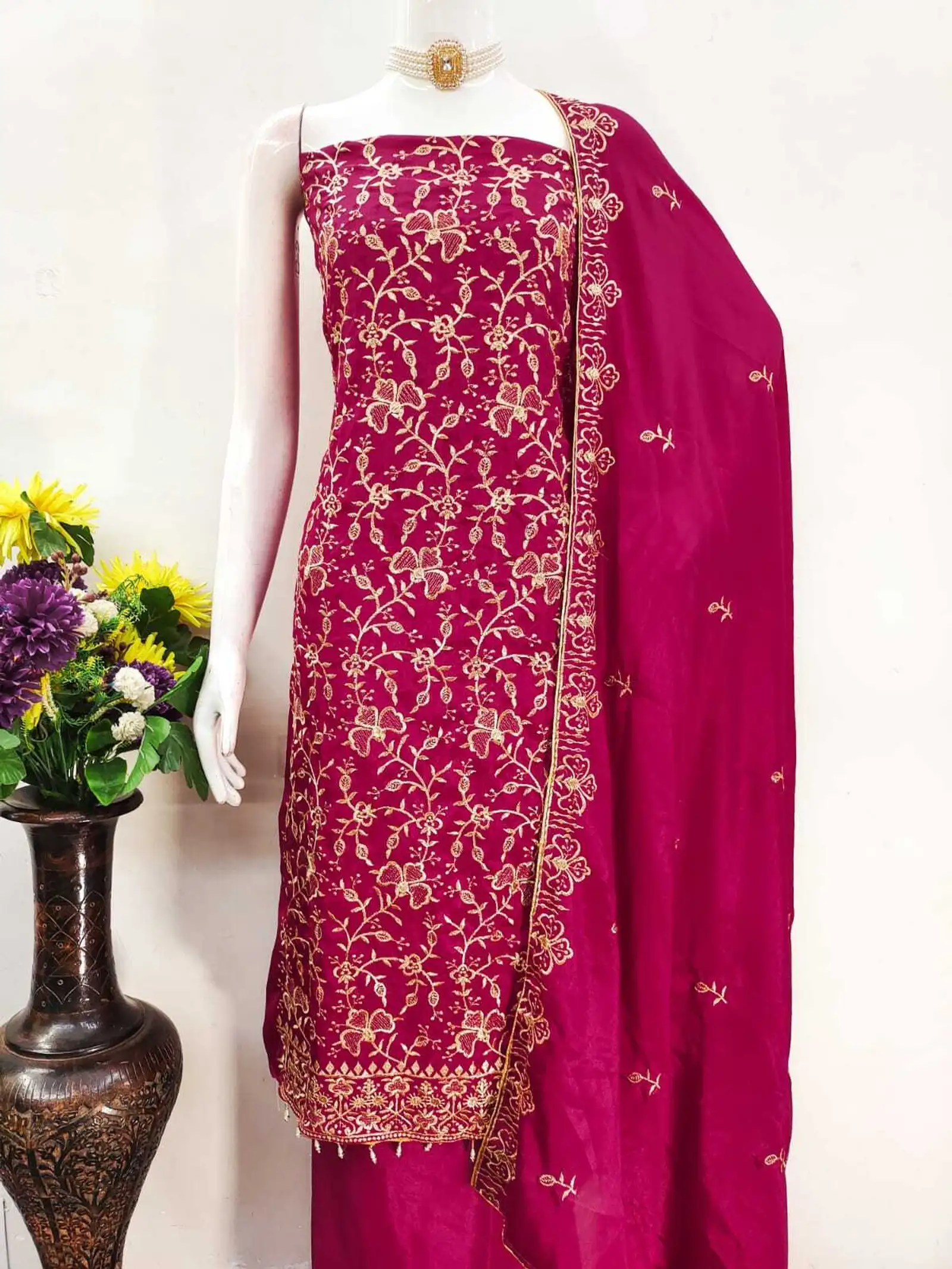 BRAD LEEZO Unstitched Chiffon Salwar Suit Material Embroidered