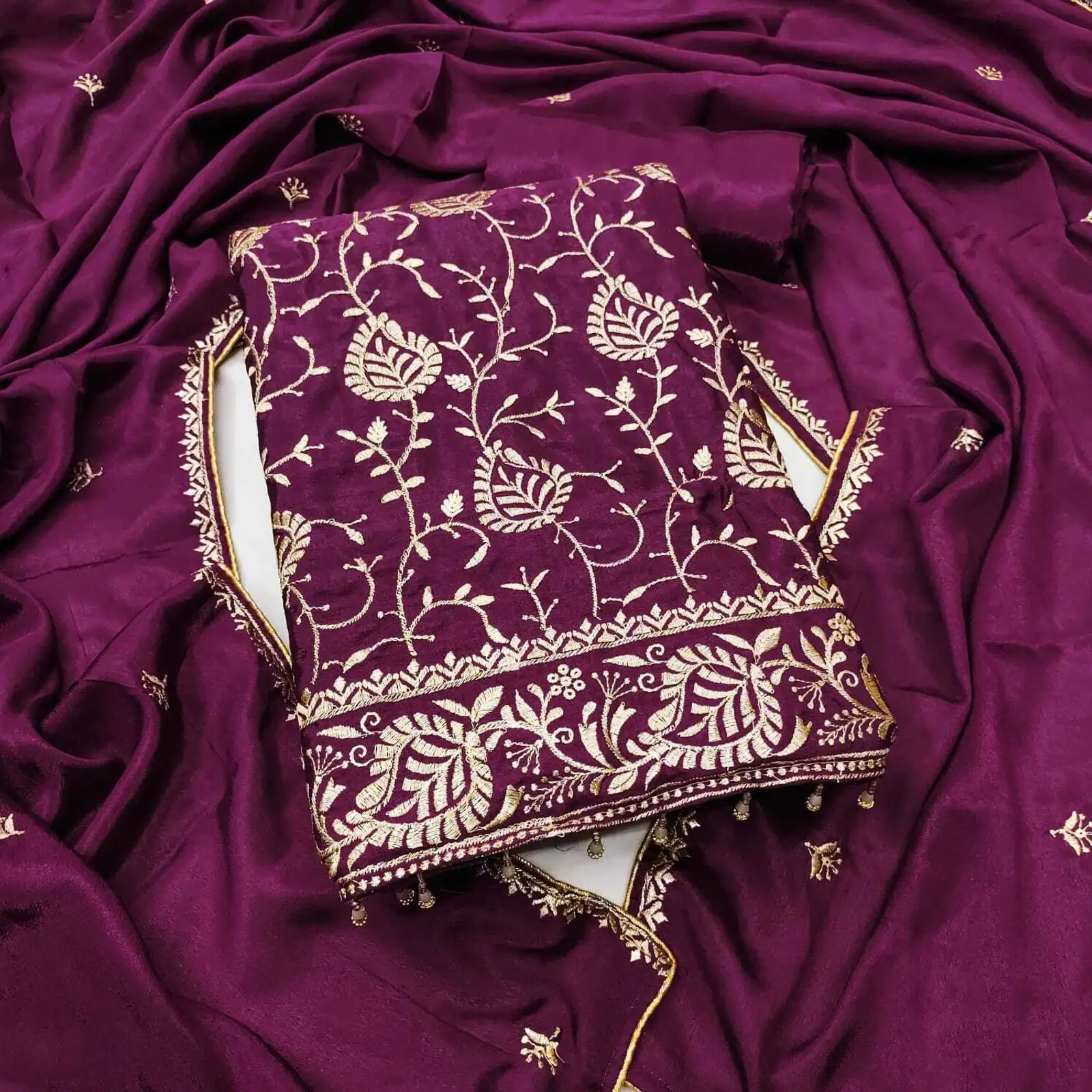 BRAD LEEZO Unstitched Chiffon Salwar Suit Material Embroidered