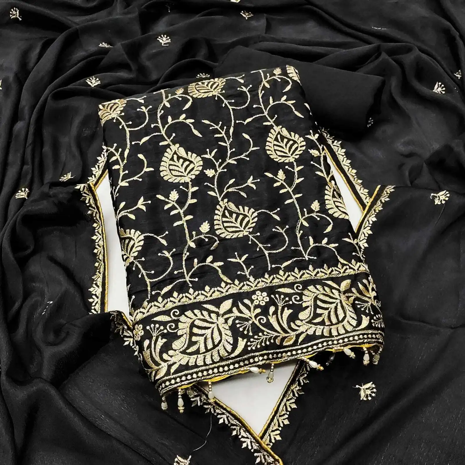 BRAD LEEZO Unstitched Chiffon Salwar Suit Material Embroidered