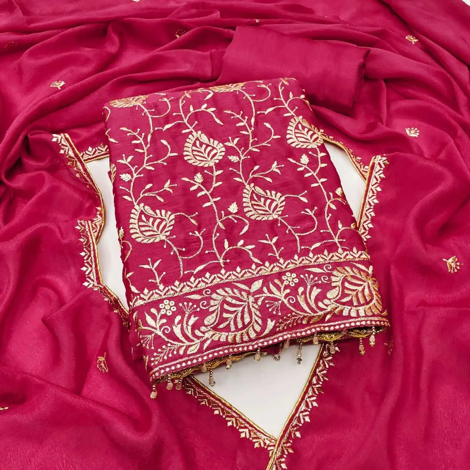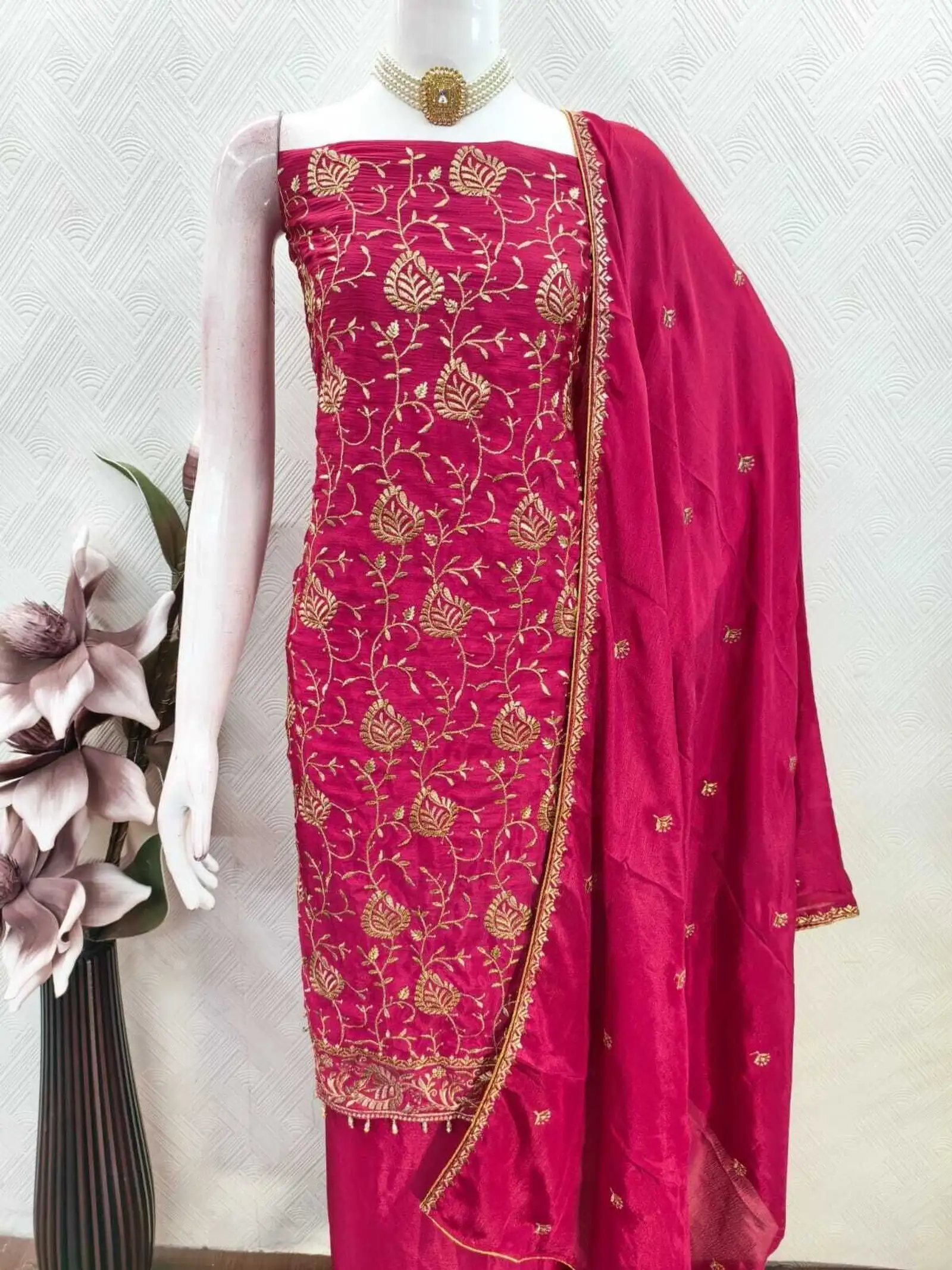 BRAD LEEZO Unstitched Chiffon Salwar Suit Material Embroidered