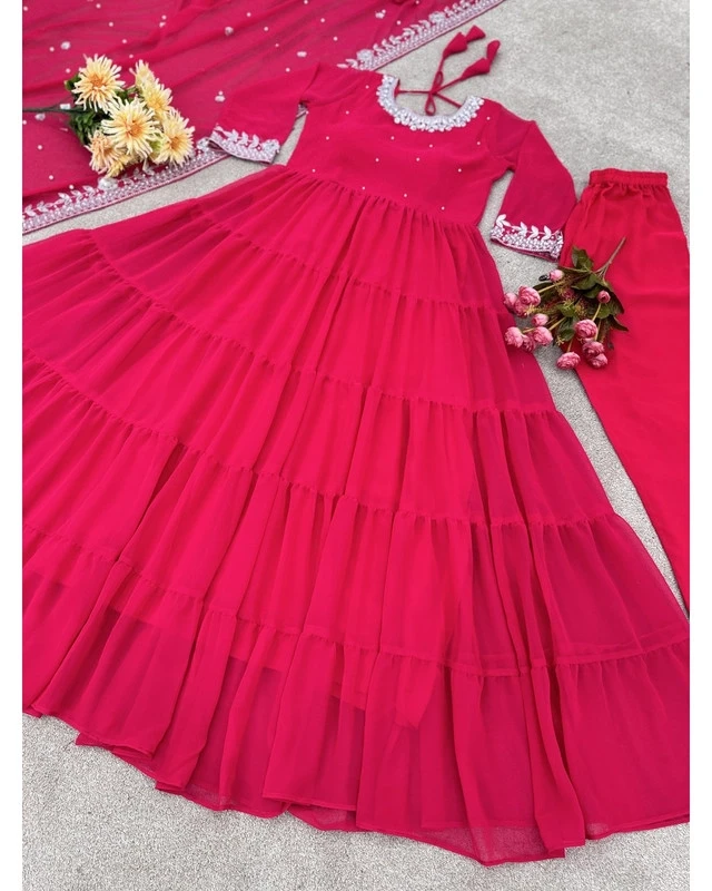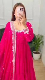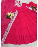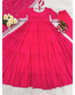 This Anarkali is perfect for women who love vibrant ethnic wear with a traditional touch. The rich pink color enhances its festive appeal, while the soft fabric provides ease of movement and comfort for long hours. Its minimal yet elegant design makes it suitable for both daytime and evening events.
