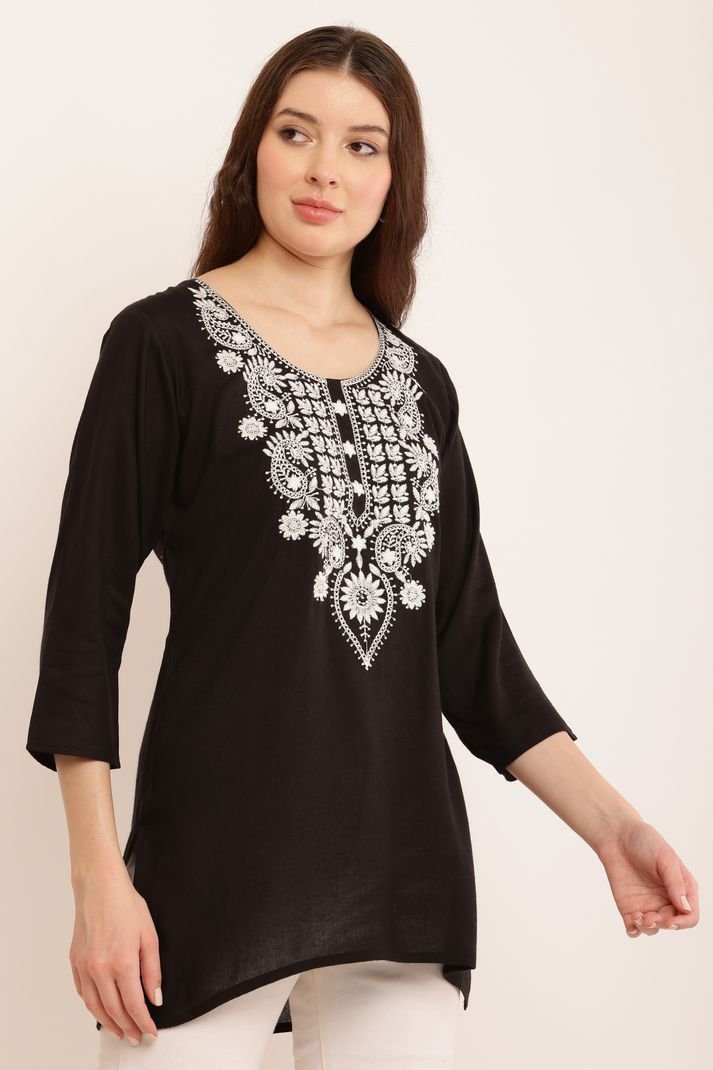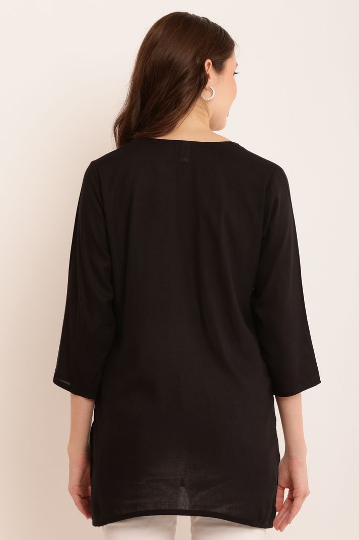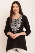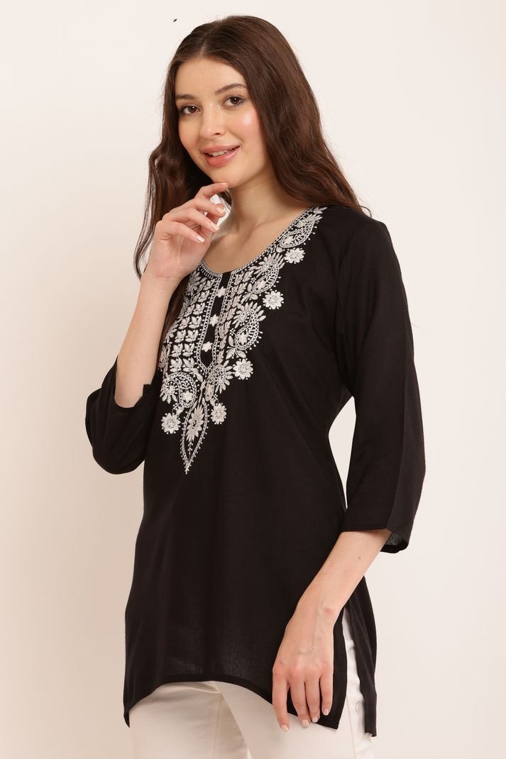 Casual Regular Sleeves Embroidered Women Black Top | AREEBA FASHION | TA TECHNOLOGIE
