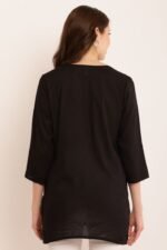 Casual Slit Sleeves Printed Women Black Top | AREEBA FASHION | TA TECHNOLOGIE