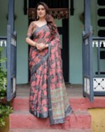 - Elevate your ethnic collection with this pure cotton linen saree, a seamless fusion of traditional elegance and modern comfort.