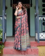 - Cotton linen is celebrated for its breathability, durability, and natural texture, making it an ideal fabric for sarees that are comfortable to wear throughout the day. Its blend ensures that you enjoy the softness of cotton and the sturdy feel of linen, providing a perfect balance for any season.