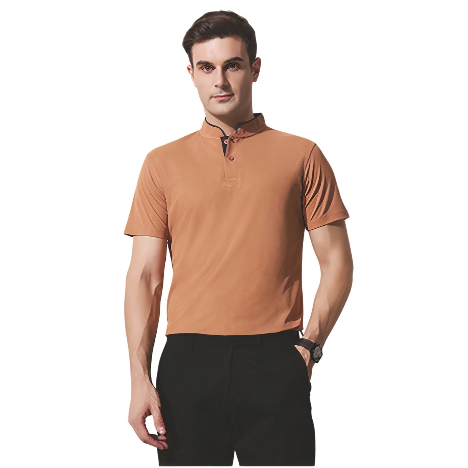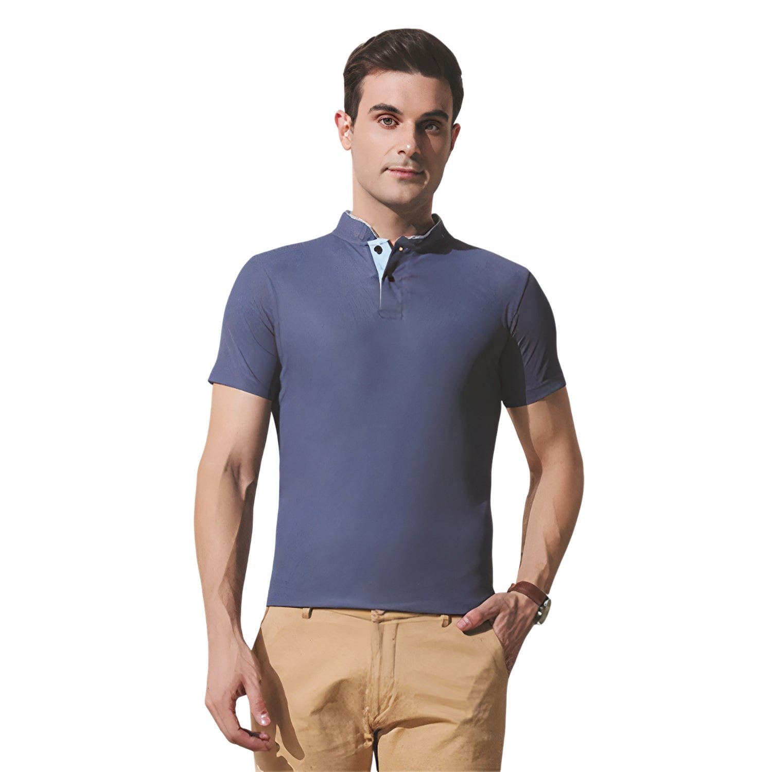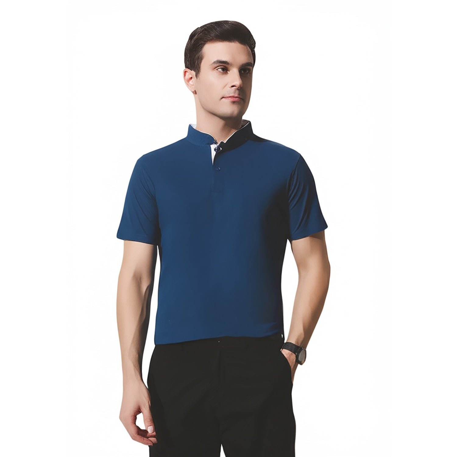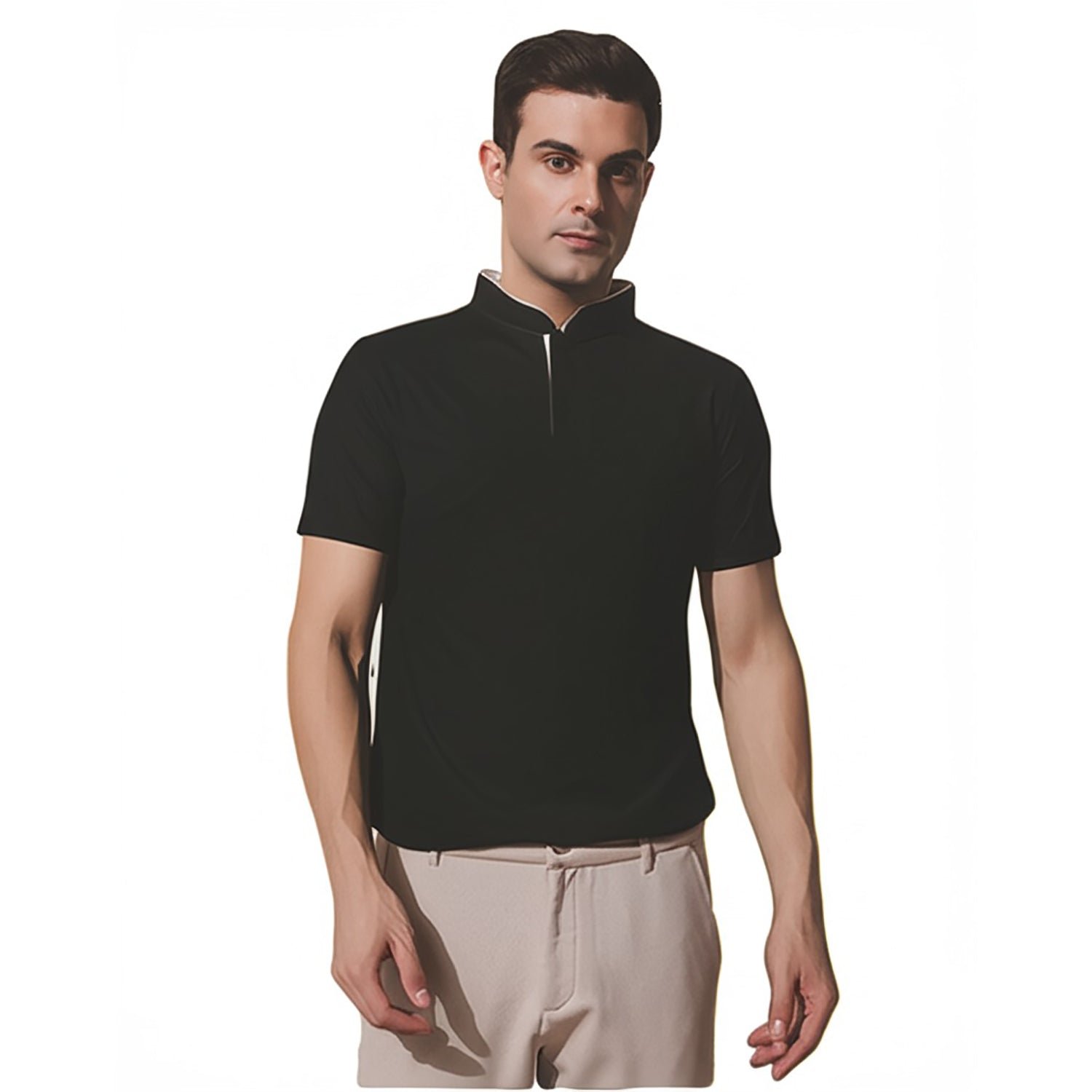 Its stylish Chinese collar adds a fashionable edge, making this t-shirt suitable for both casual and semi-formal occasions. The polyester material is lightweight, wrinkle-resistant, and moisture-wicking, helping keep the wearer cool and comfortable.