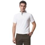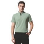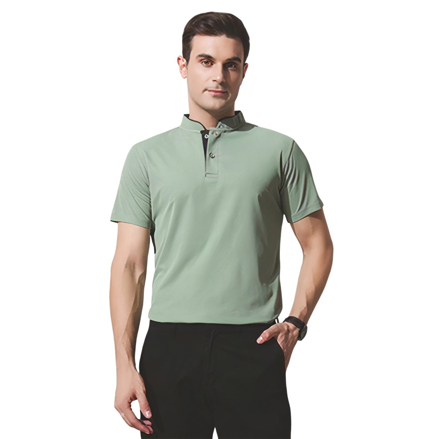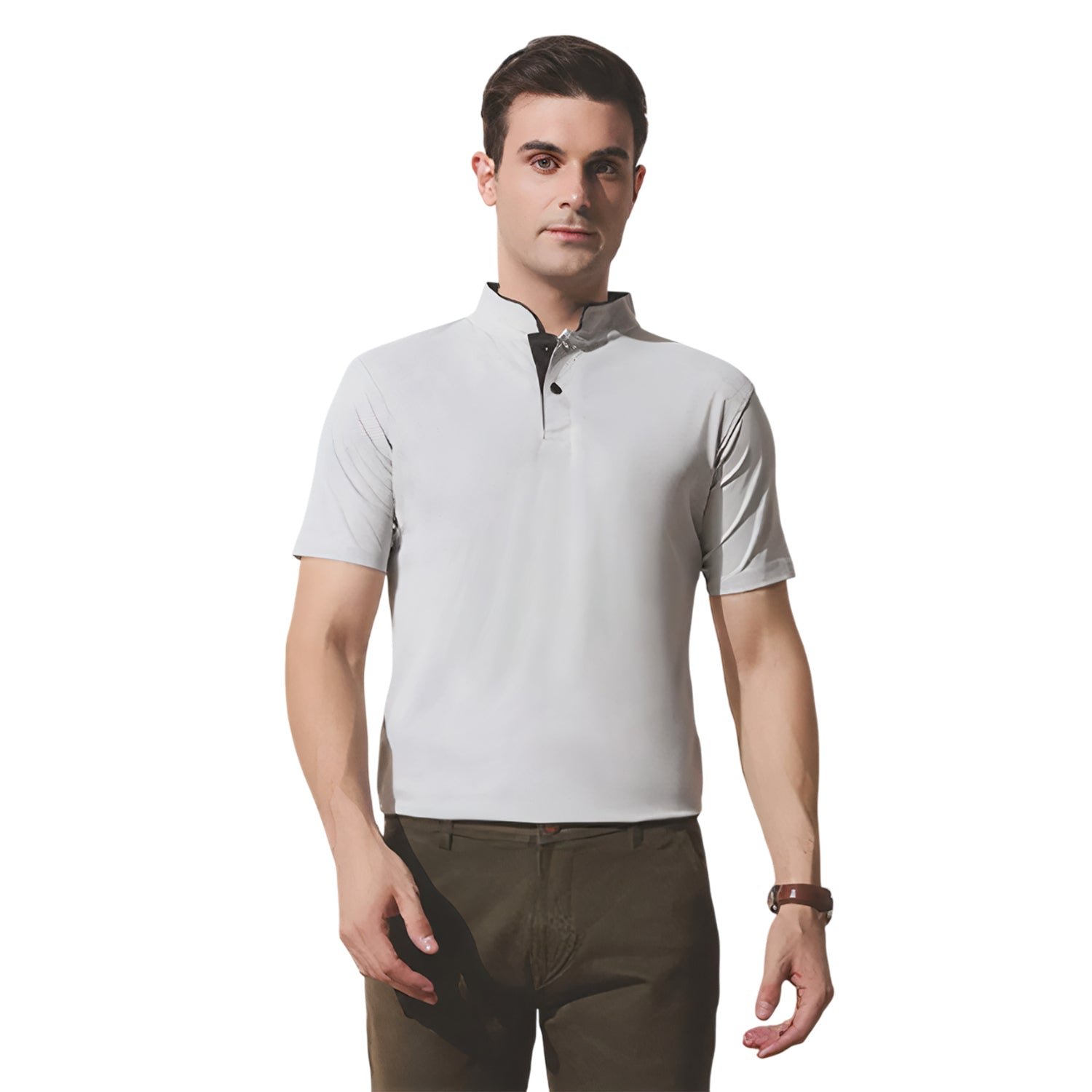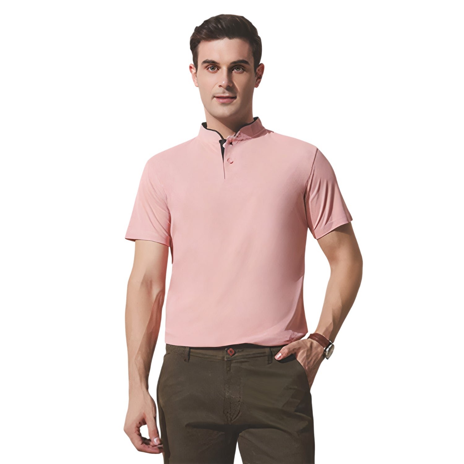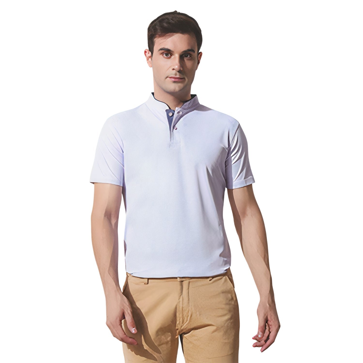Its stylish Chinese collar adds a fashionable edge, making this t-shirt suitable for both casual and semi-formal occasions. The polyester material is lightweight, wrinkle-resistant, and moisture-wicking, helping keep the wearer cool and comfortable.