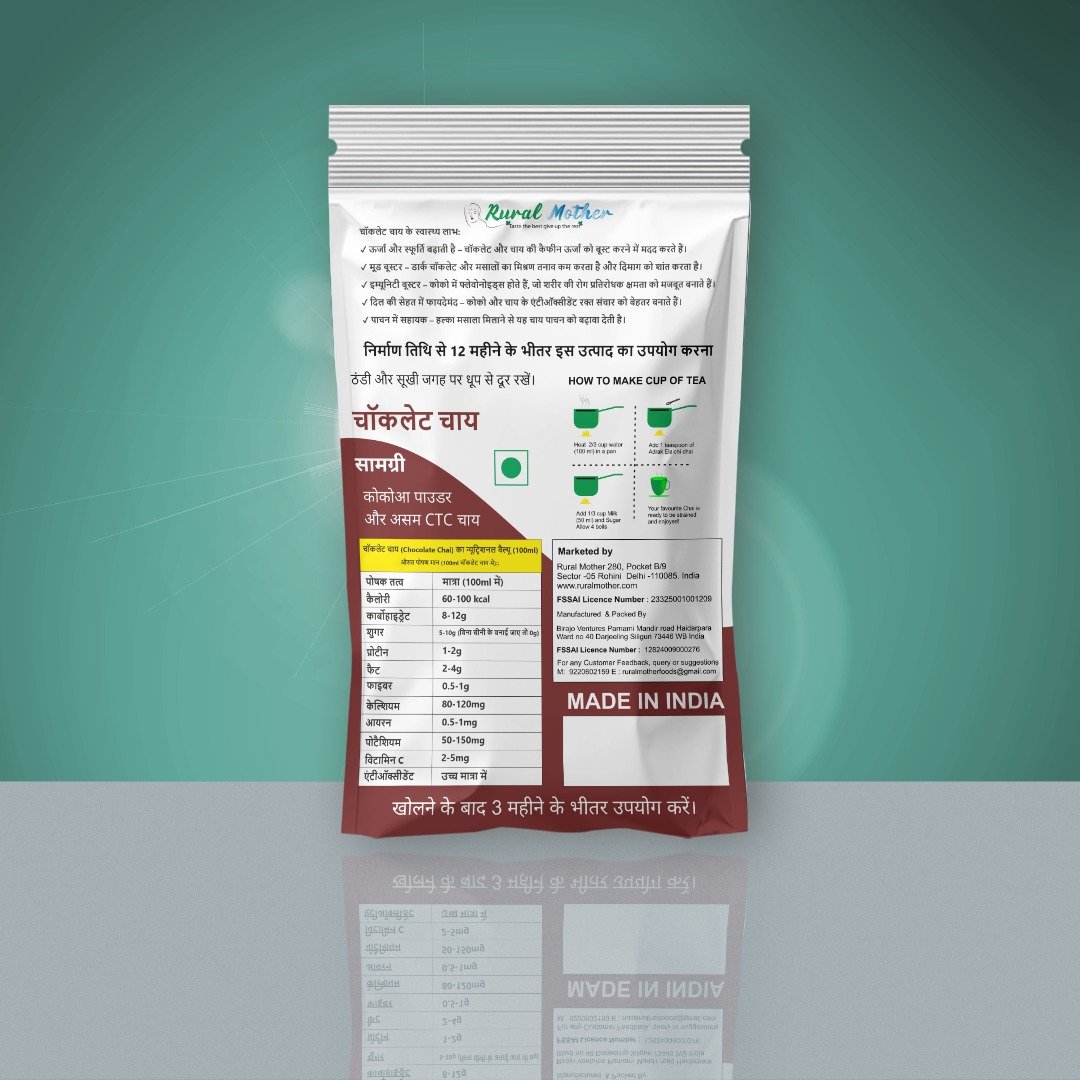 Perfect for chocolate lovers, cozy evenings, or when you want to enjoy something different from regular chai, Rural Mother Chocolate Chai brings warmth and indulgence to every sip.