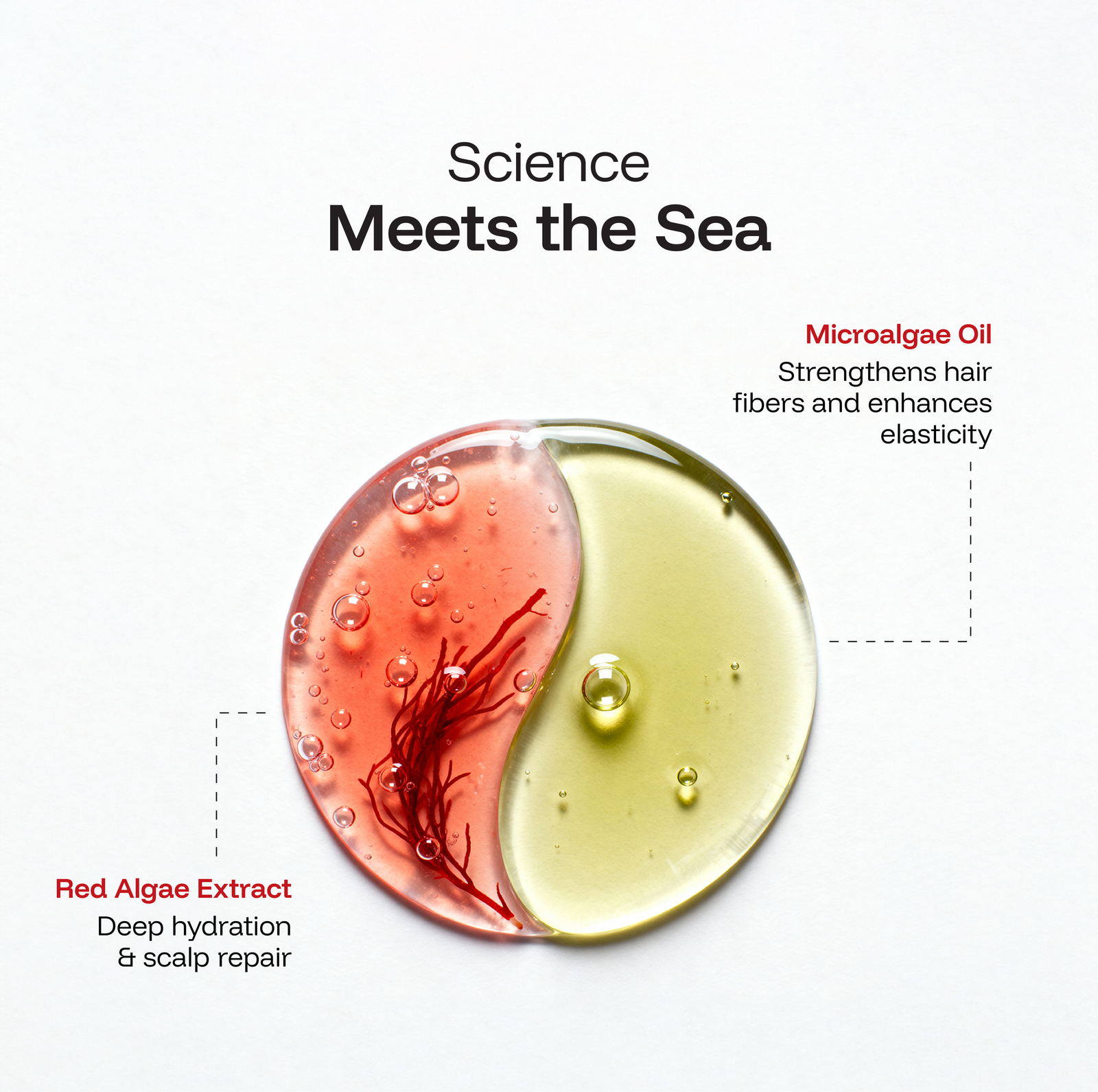ThisRed Algaehair mask provides instant smoothness and long-term strength. Specially crafted for damaged, frizzy hair and troubled scalps, this intensive mask is powered by red algae,Microalgae Oil, and Sodium Hyaluronateto nourish, detangle, and fortify each strand deeply. It calms an irritated scalp and revitalizes heat-damaged hair, making it stronger, shinier, and resistant to breakage.