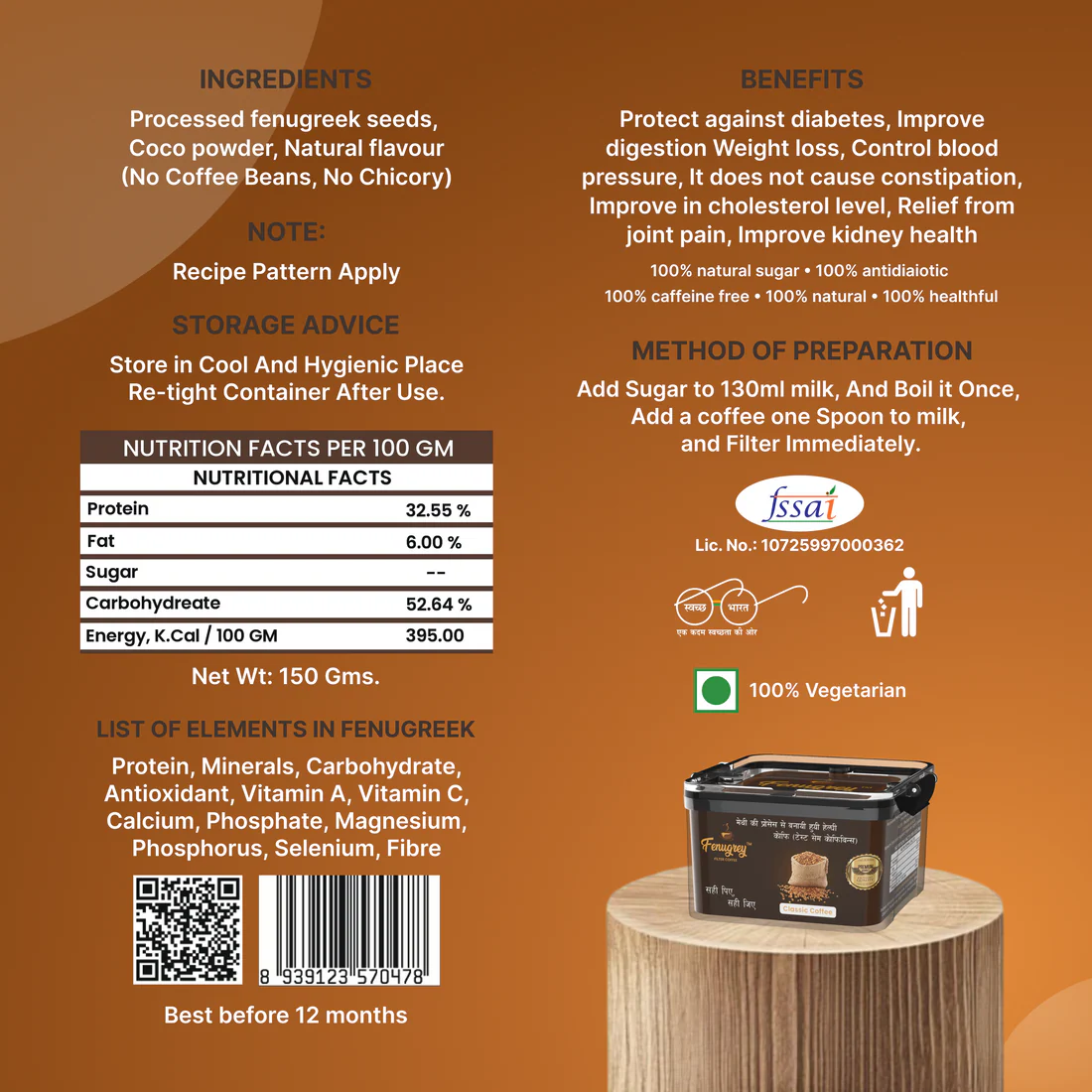 - 100% PURE HEALTHY COFFEE : We carefully combine high quality fenugreek seeds and slow-roast them to a eish medium dark perfection , ensuring that every cup of fenugrey filter coffee delivers the delightful experience you love !