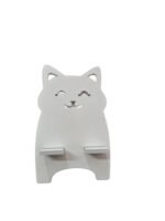 Cute Wooden White Cat Shape Mobile Holder Stand